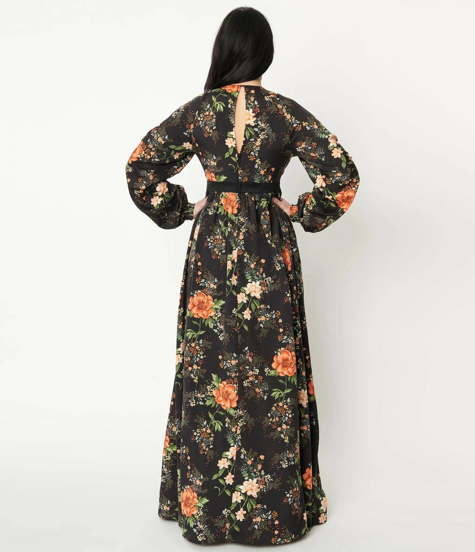 A heart-stopping maxi dress, crafted in a lightweight woven fabric that boasts a beautiful array of pink florals cascading throughout the black backdrop. Complete with a back zipper, a button back keyhole, and side pockets.