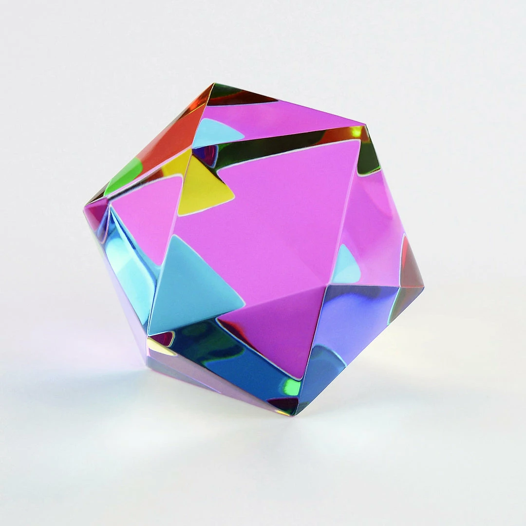 The Motus is a unique and very special polyhedron, with twenty equal triangular faces. Each vertex of the Motus is formed by joining five triangle faces together. It is one of the 5 Platonic solids.