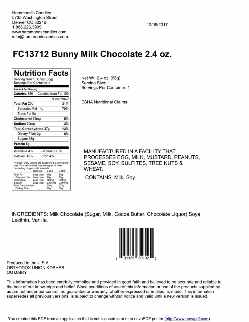 A perfect springtime treat! Hammond’s Solid Milk Chocolate Bunny, Carlton, is handmade in Denver, Colorado. This bunny is perfect for Easter. Include it in an easter basket for your kids or for a friend. This bunny will be the talk of the party!