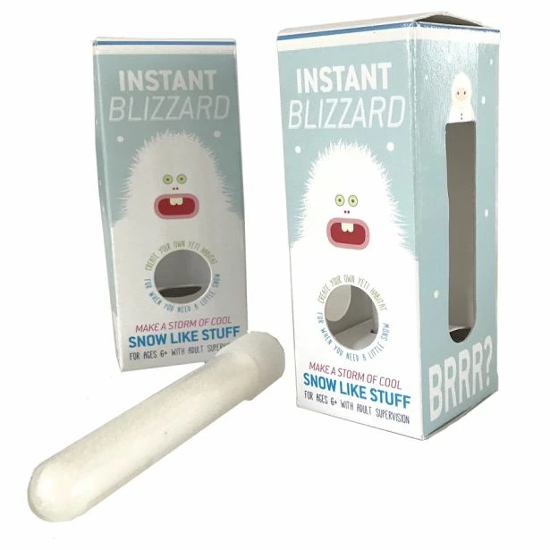 ย Makes ~2 cups of cool snow-like stuff with volume swelling and water absorbing properties. Snow powder comes packed in a test tube