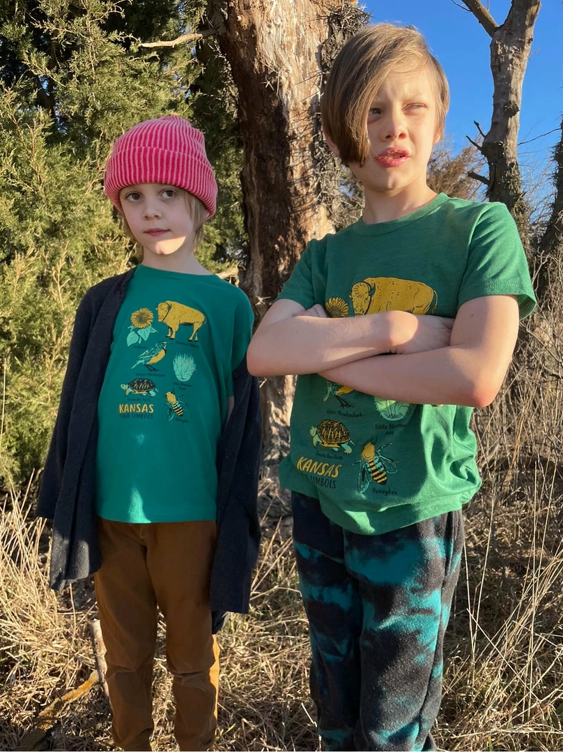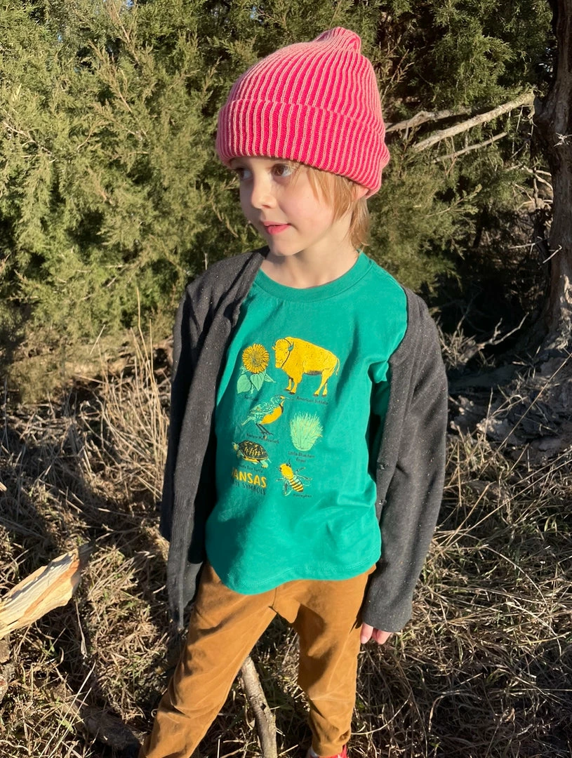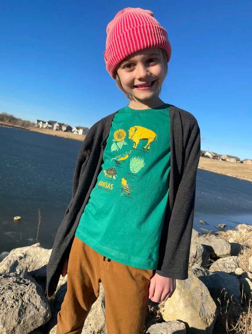 Cheerfully done green Kansas symbols tee for little kiddos 2t-5t