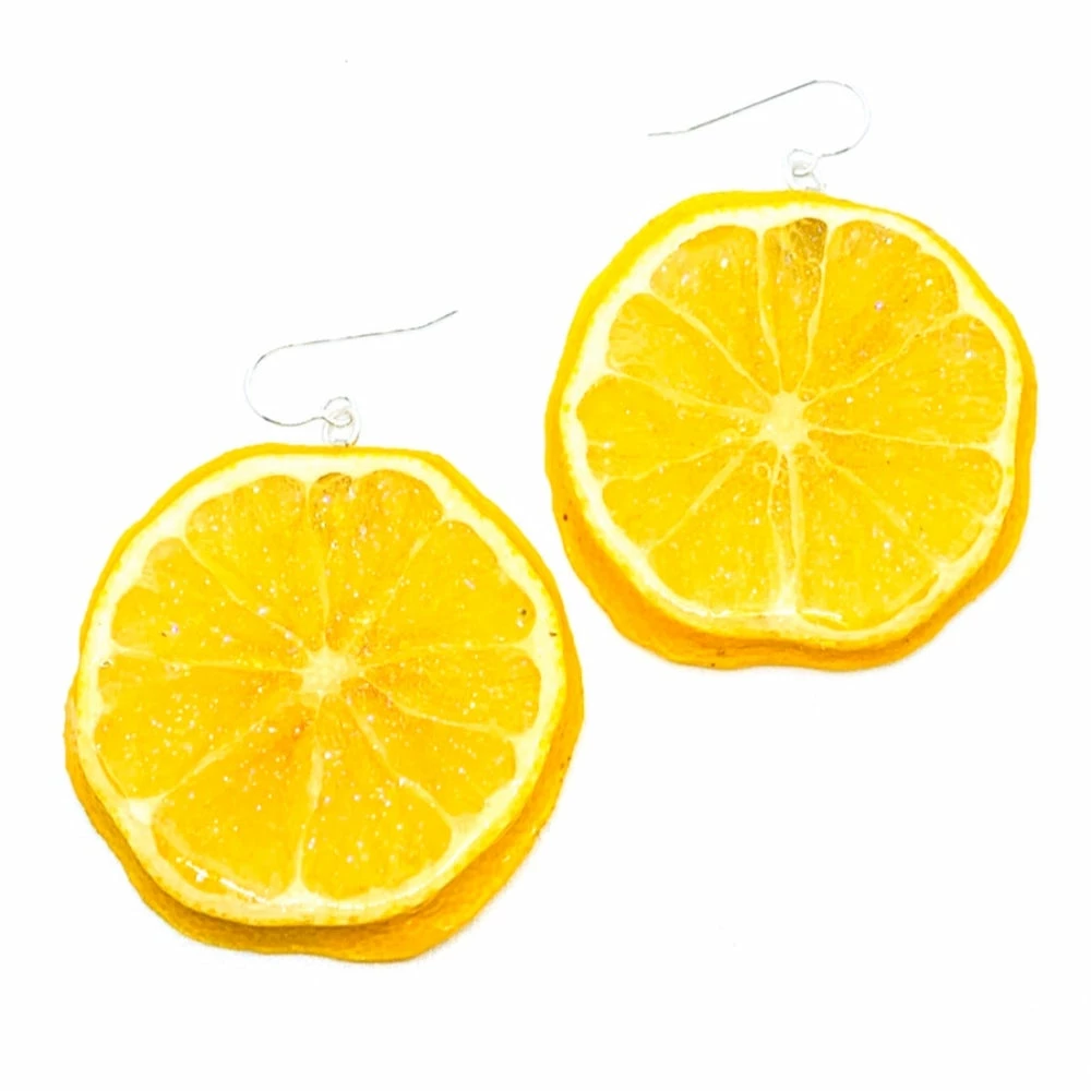 Lemon Statement Earrings made from the brightest lemons, they are sliced, preserved and encased in our glitter resin.