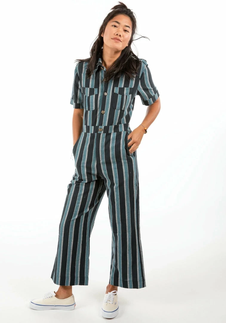 Your favorite cozy yet stylish lounge wear. The Marr’s Jumper is made of super soft cotton. Inspired by 1940’s workwear with front patch pleat and side pockets, shoulder tab details, relaxed sleeve, zip fly and button closure. Elastic back waist with relaxed hips and legs.