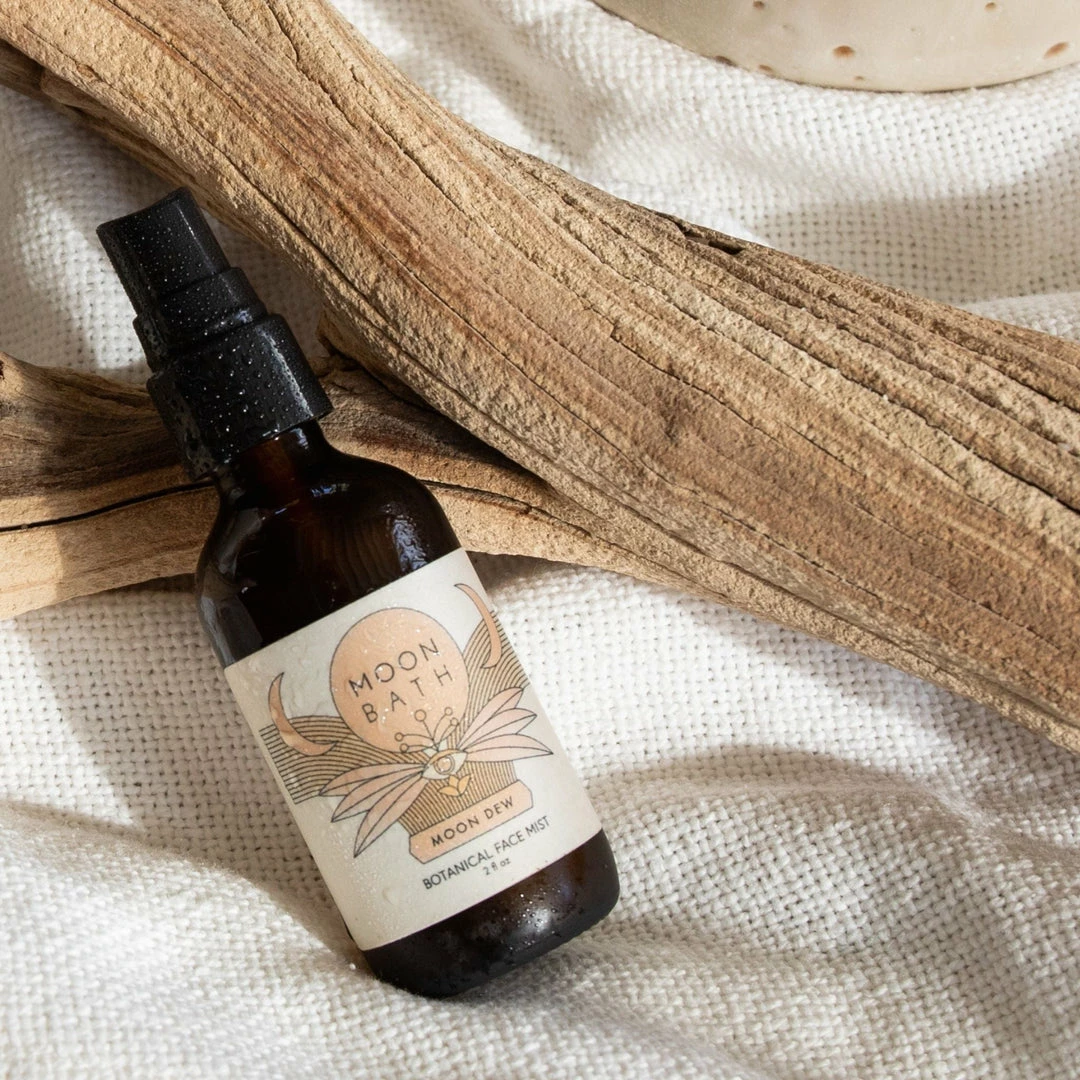 Dance in the lunar glow with the aromatic waters of frankincense, lavender and rose. Spray Moon Dew lavishly to arouse your senses and balance your skin — all day every day. 2 fl. oz