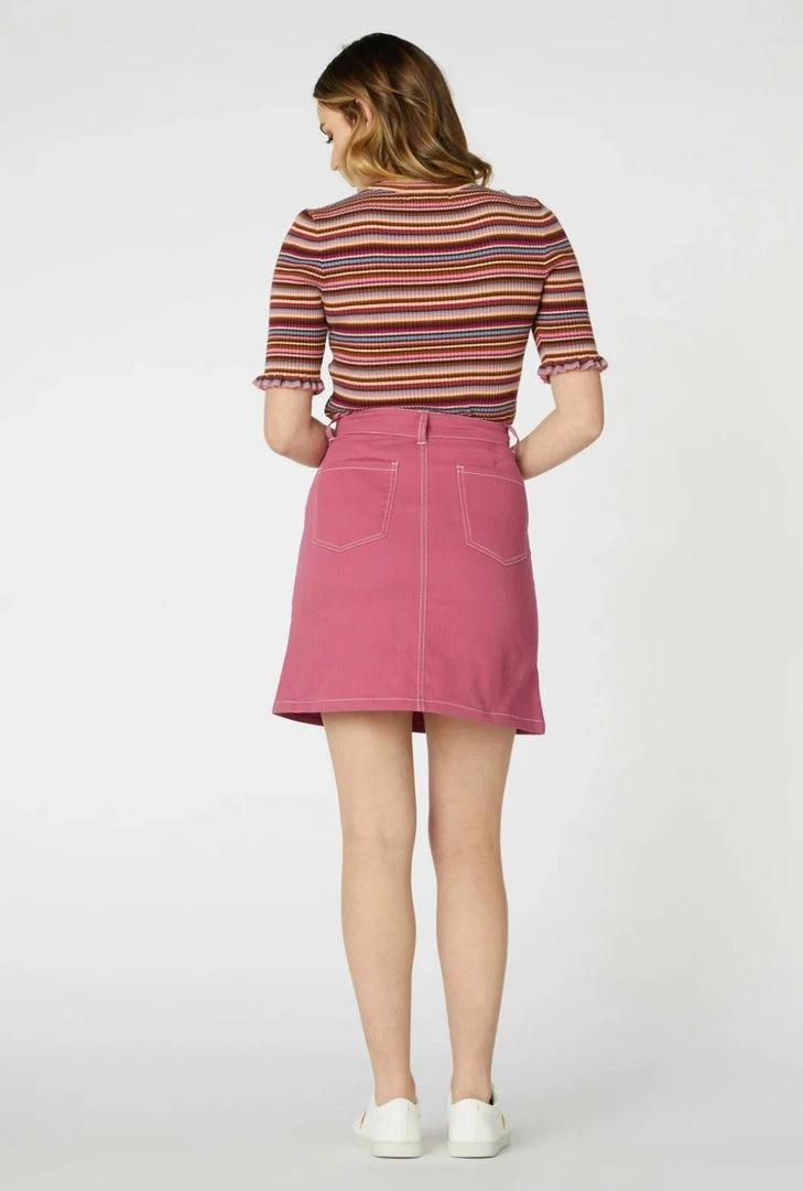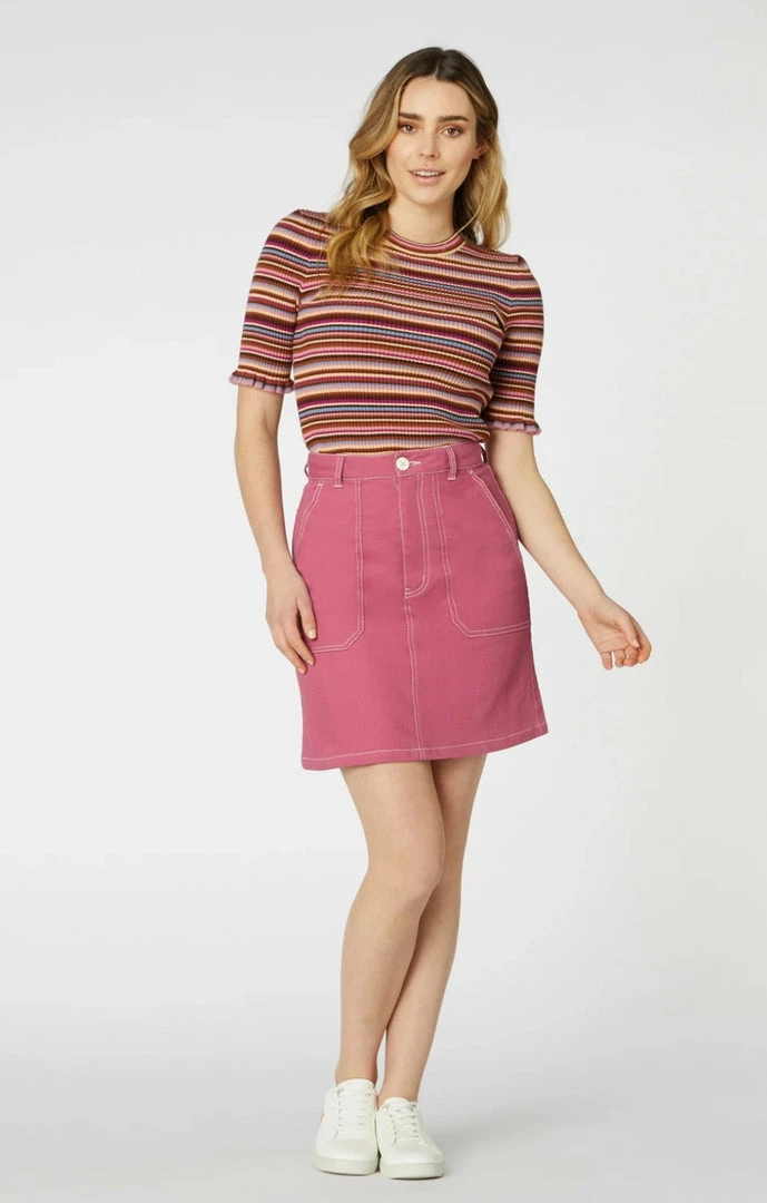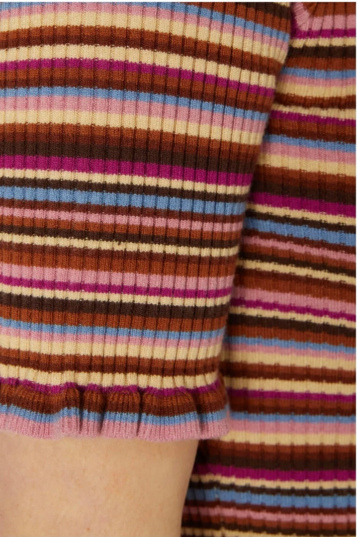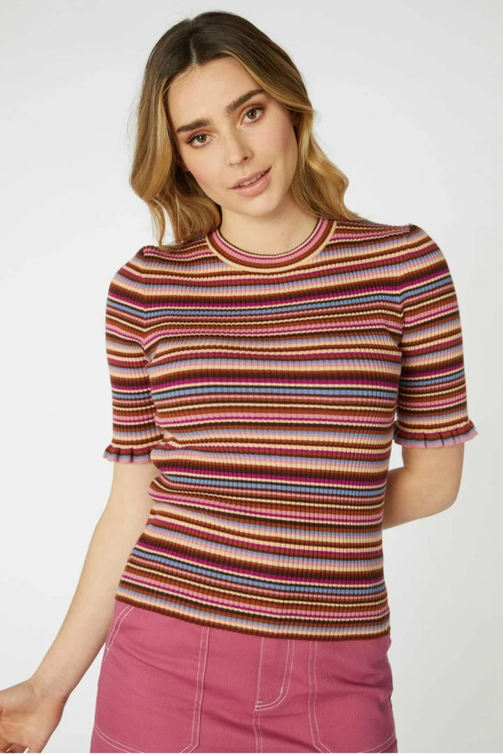 -short sleeve, striped rib knit top