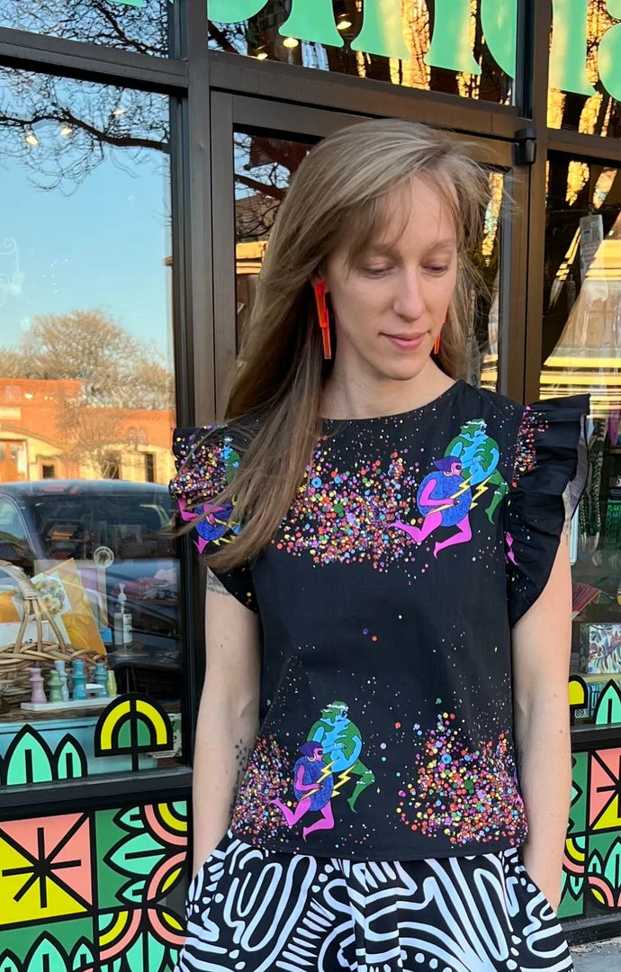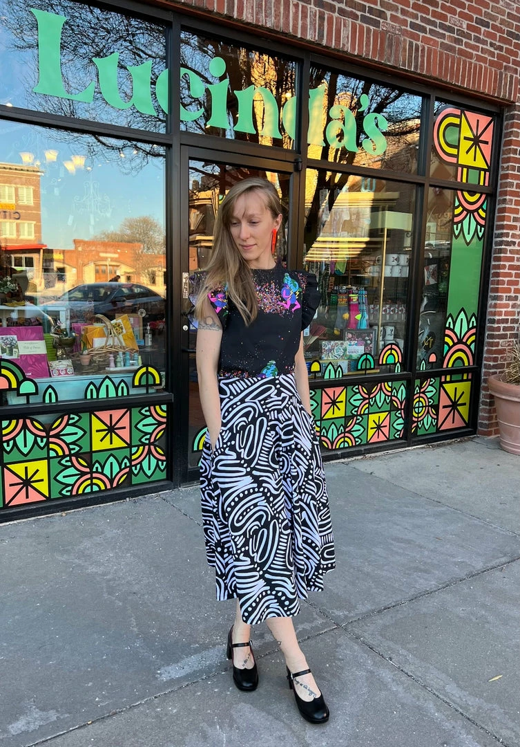 Care instructions: We want all our garments to last without harming the environment so only wash garments when they really do need it. Then turn them inside out and hand wash in cold water to preserve the print color and hang dry. We prewash our poplin to avoid shrinkage on your end but everyone’s water and soap vary so there could be a teensy bit more.