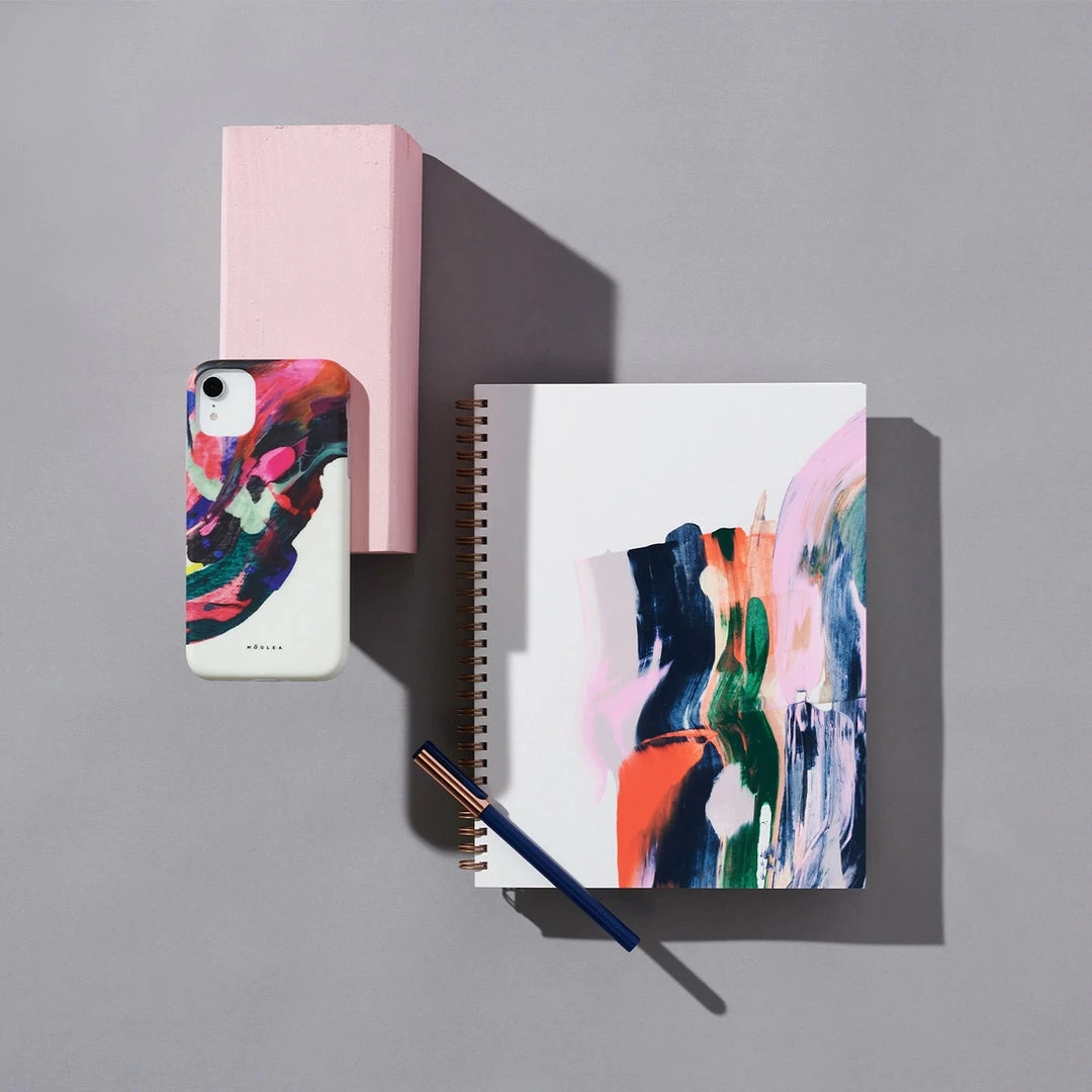 Because Moglea’s notebooks are hand painted, each is unique and beautiful! Your book will have the same color palette and vibe, but each is unique!