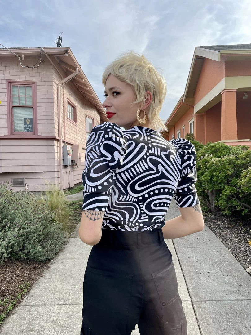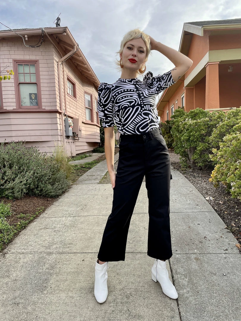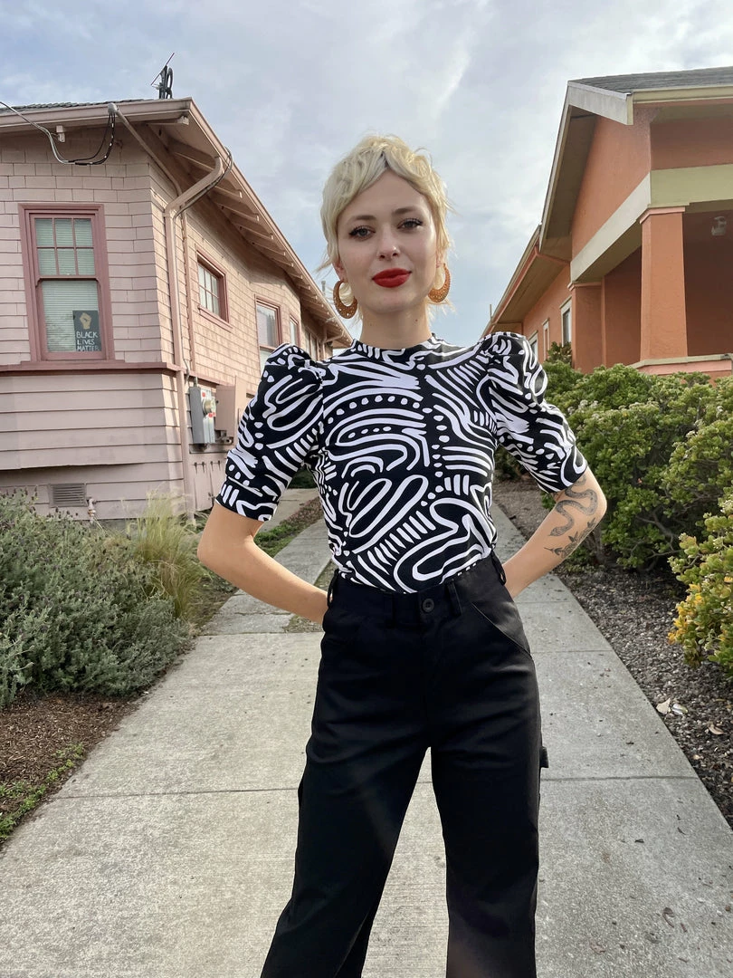This big puff sleeve top is perfect for adding a touch of drama to any look. It has the same scoop on the hip as the muscle tee bottom to give you a flattering line if you want to wear it untucked.