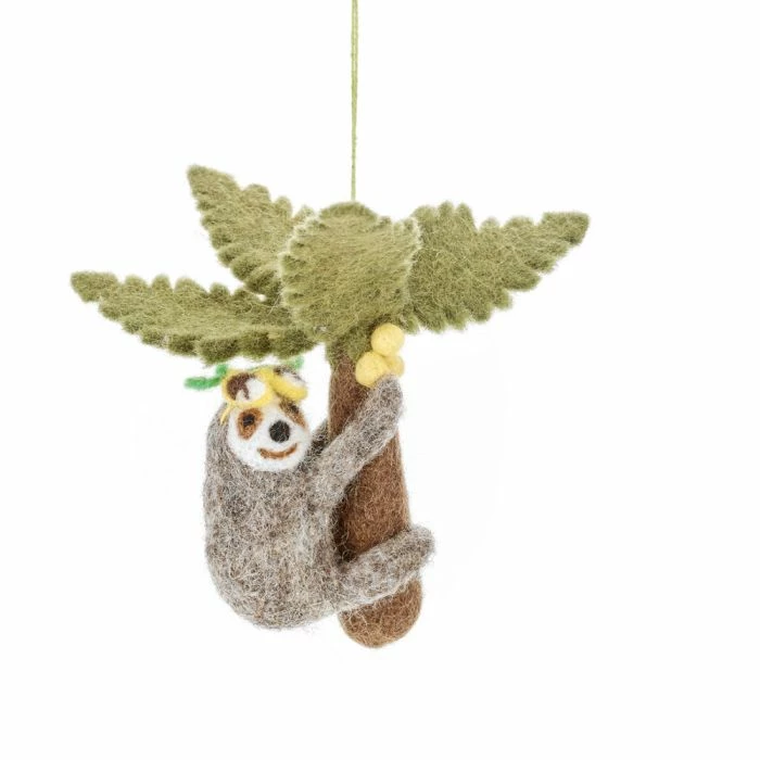 Nothing screams clear blue skies and white beaches quite like our Paradise Sloth. Wet felted palm leaves have been handstitched to the trunk and our favorite little needle felted sloth has been handstitched to keep him hanging from the palm tree for all his days! He’s made from 100% sustainable New Zealand wool and is completely plastic free.