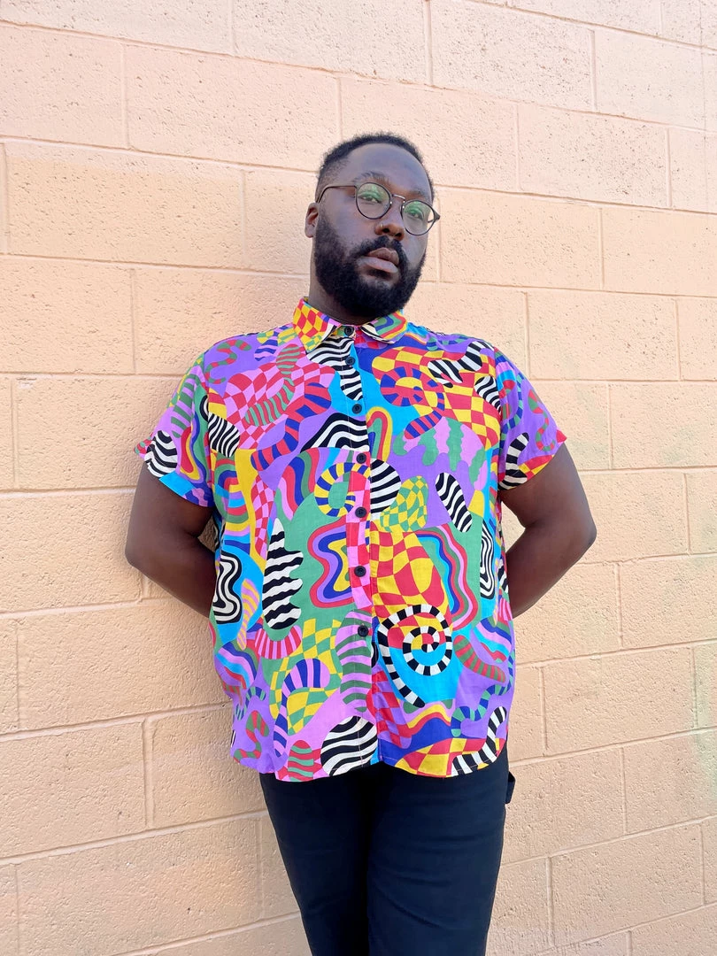Care instructions: We want all our garments to last without harming the environment so only wash garments when they really do need it. This item is made of 100% rayon so we advise you dry clean only. We’ve experimented with hand washing on cold and hang drying but because every textile has a different ink/fabric combination the shrinkage is inconsistent and not worth the risk.