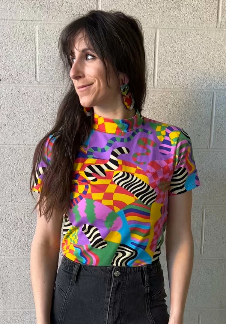 Made in stretch cotton jersey. Featuring artwork byΒ Zoe Schlacter