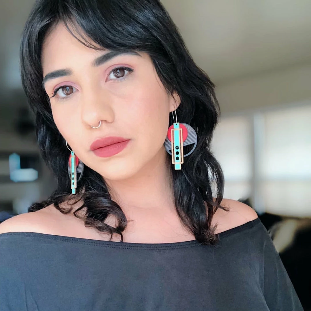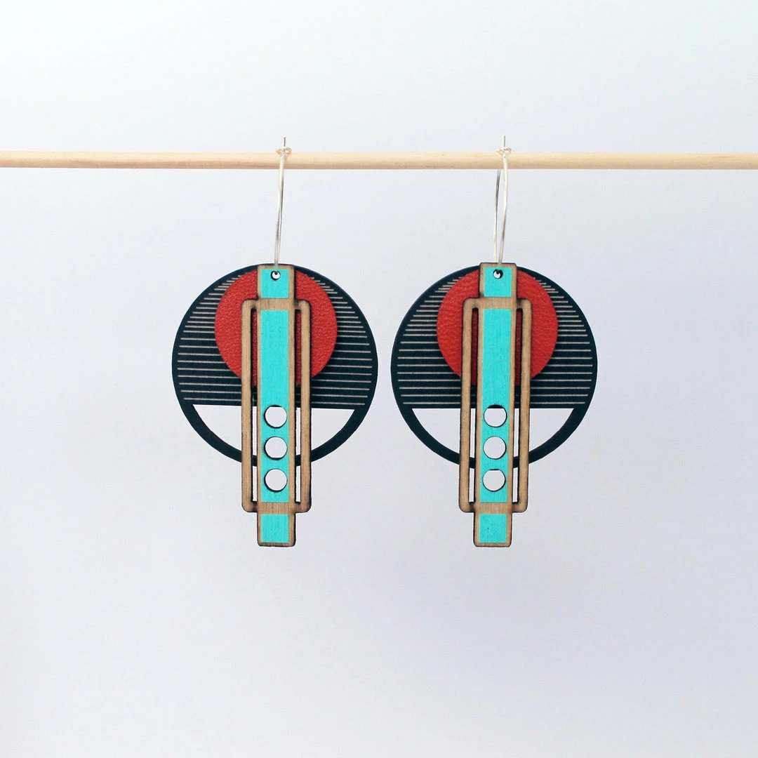 MATERIALS: Lightweight leather + birch wood 1″ silver plated hoop (nickel free, lead free) Overall length: Approximately 2.25″