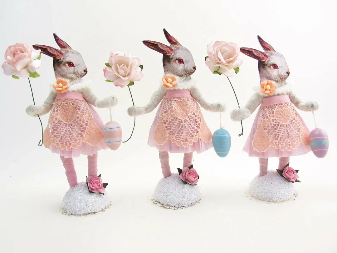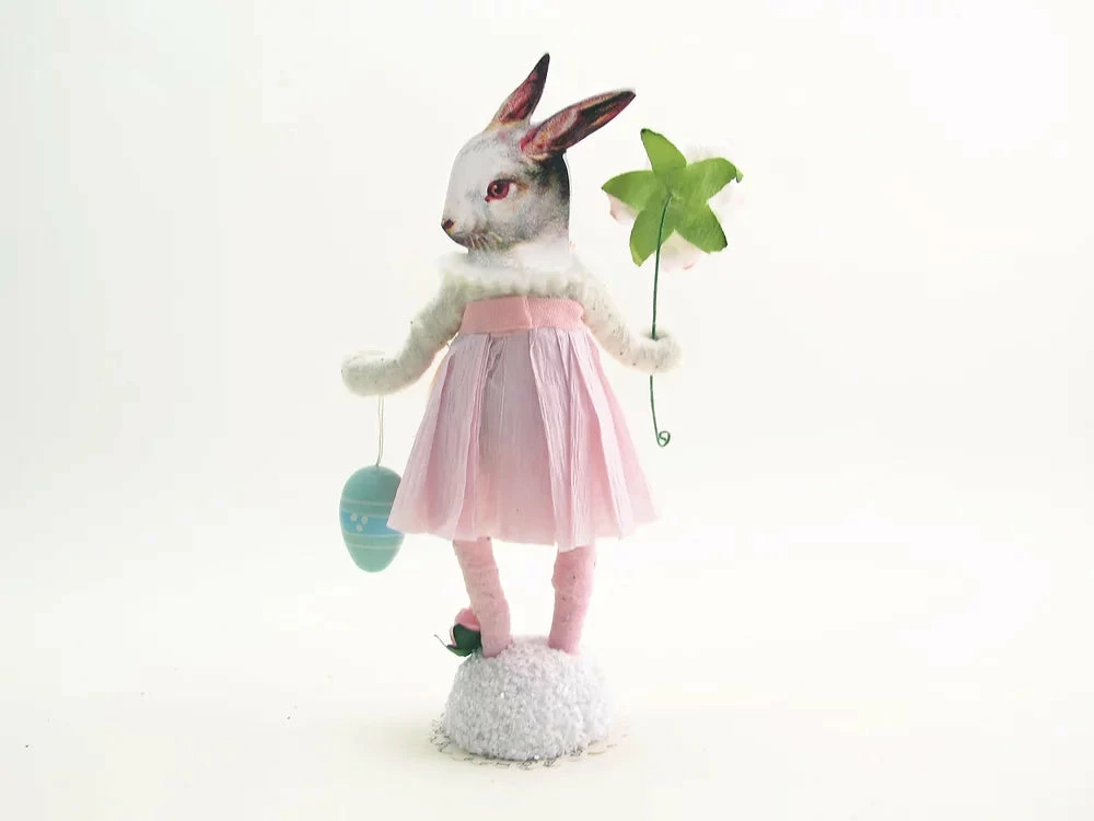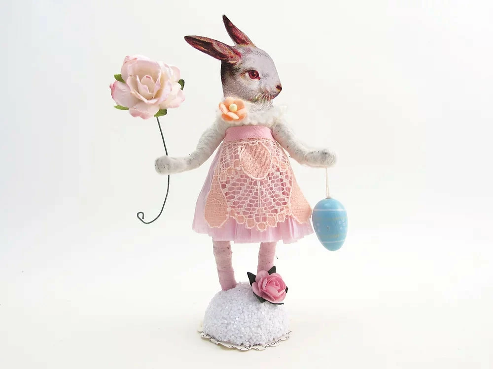 Vintage by Crystal items are handmade using the lost art of spun cotton. They are outfitted and accessorized with a variety of new, vintage and found materials. Exact clothing, color, faces and accessories might vary from the photo depending on the materials they have.