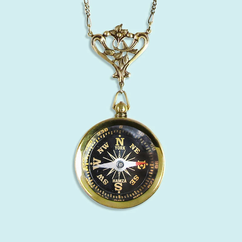 Compass with brass floral link on antique gold figaro chain.