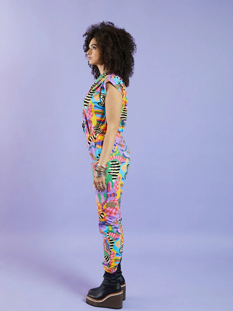 This pantsuit really is magic. For those of you in pant suit denial you may want to break down and try this one. Made in stretch cotton jersey with pockets and a little elastic in the back it’s the coziest way to look cool.
