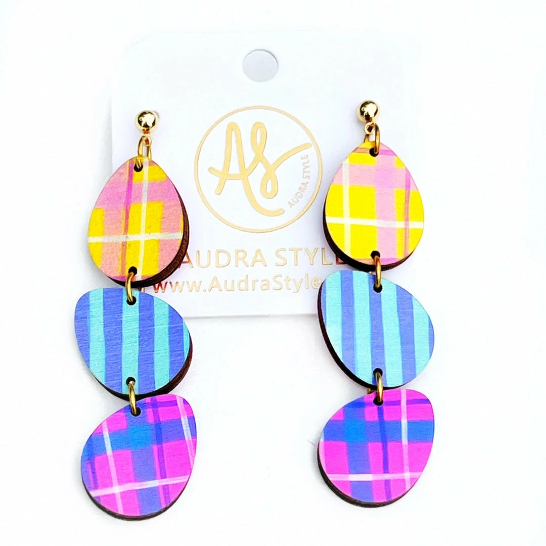 Each earring is made of lightweight wood and designed from Audra’s artwork.