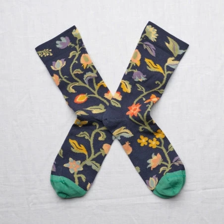 The French brand Bonne Maison creates high quality socks with Egyptian cotton and an elastane double thread. These mid-calf length socks are machine washable at 30/40° C. The composition of these thin socks is : 90% cotton, 8% Polyamide, 2% Elastane. This perfect mix offers to the socks solidity & comfort. Part of the production of these sheer knitted socks is made in Portugal.