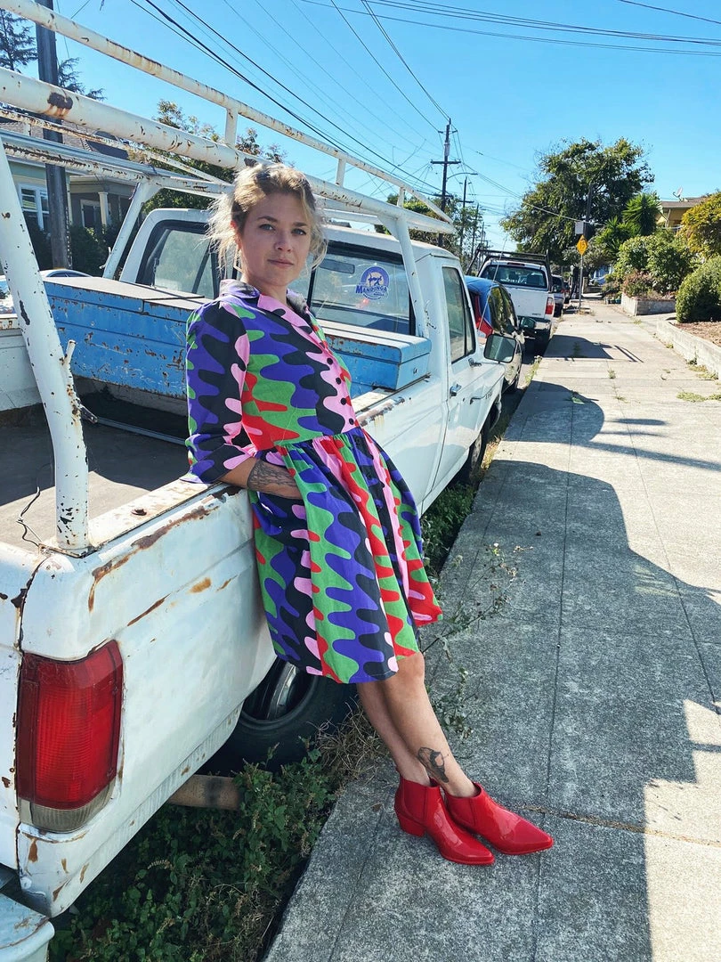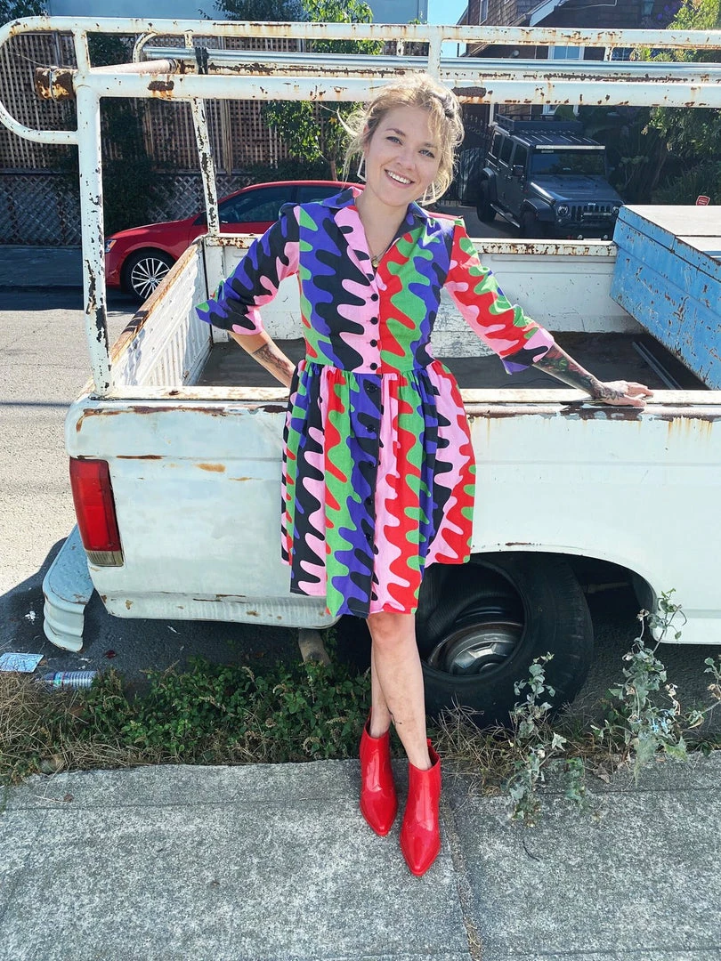 Care instructions: We want all our garments to last without harming the environment so only wash garments when they really do need it. Then turn them inside out and hand wash in cold water to preserve the print color and hang dry. We prewash our poplin to avoid shrinkage on your end but everyone’s water and soap varies so there could be a teensy bit more.