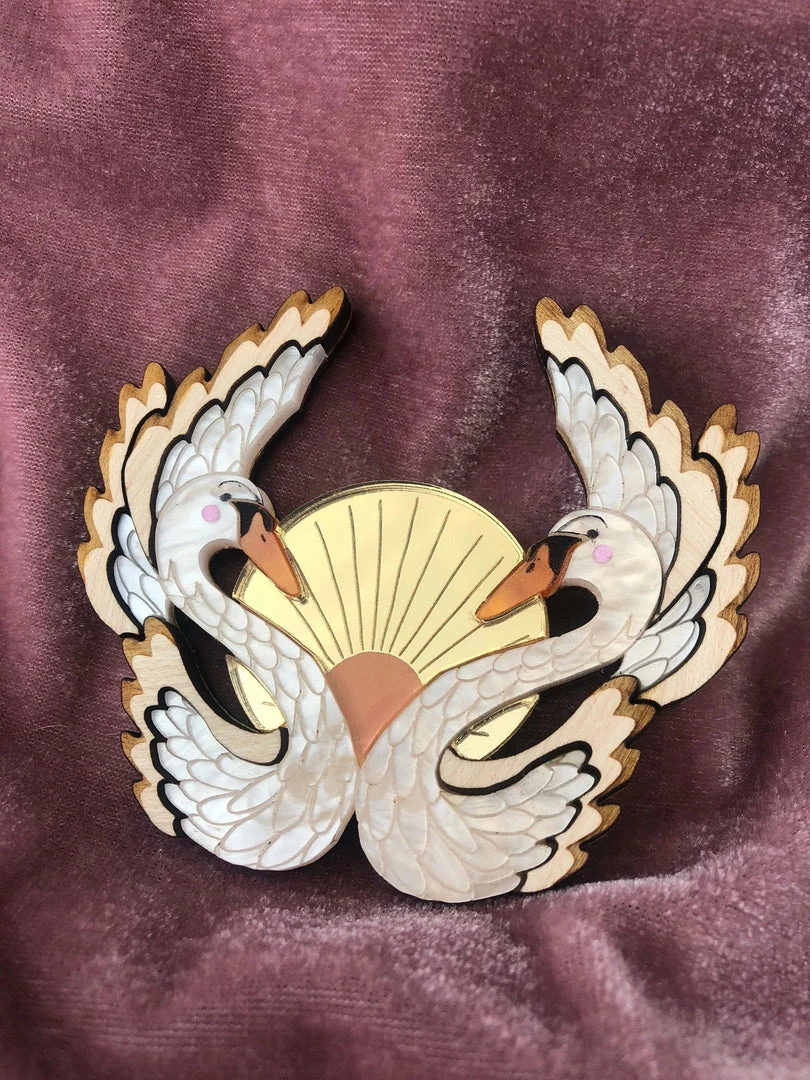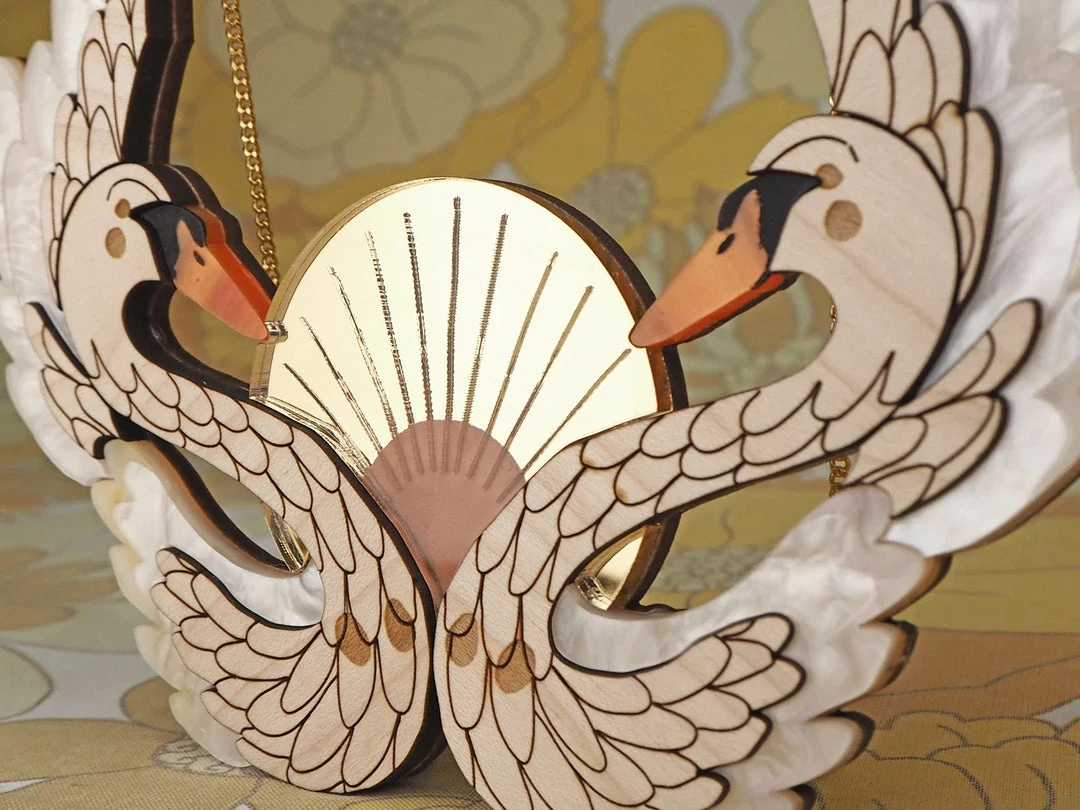 If you love the large statement necklace but want something a little more discreet then you’ve found your piece! A truly elegant and eye catching necklace. The swans sit magnificently in front of the setting sun making a gorgeous formation with their feathered wings.