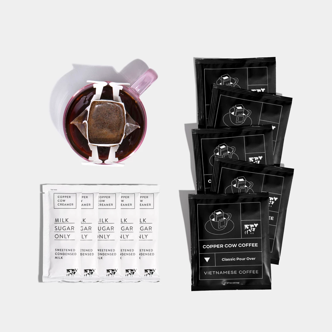 The Classic Latte is a sweet primer to the wide world of Vietnamese coffee. If you’ve got 90 seconds, that’s all it takes for a bold and smooth pour over. Top it off with one of our addictive coffee creamers, and congrats: you’ve shown yourself some major love.
