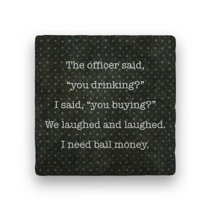 “The officer said, ‘you drinking?’ I said, ‘you buying?’ We laughed and laughed. I need bail money.”