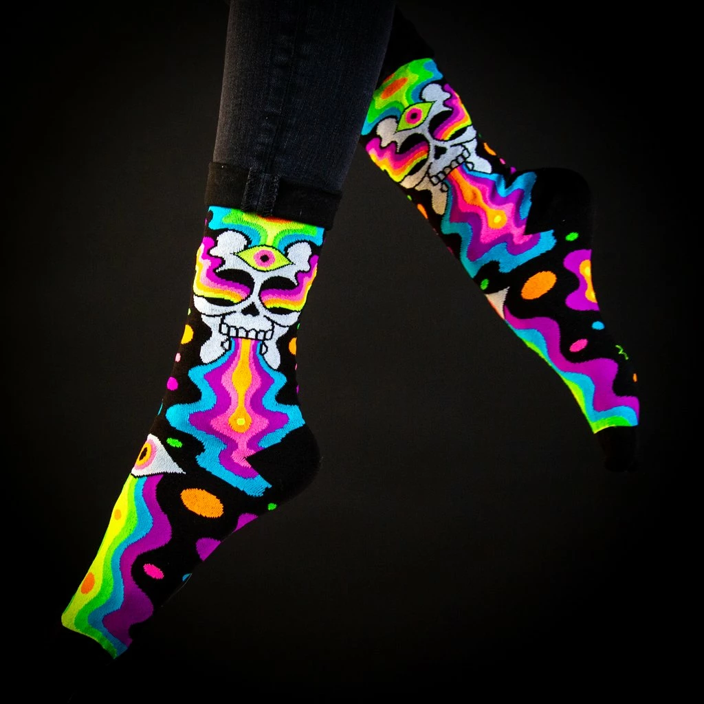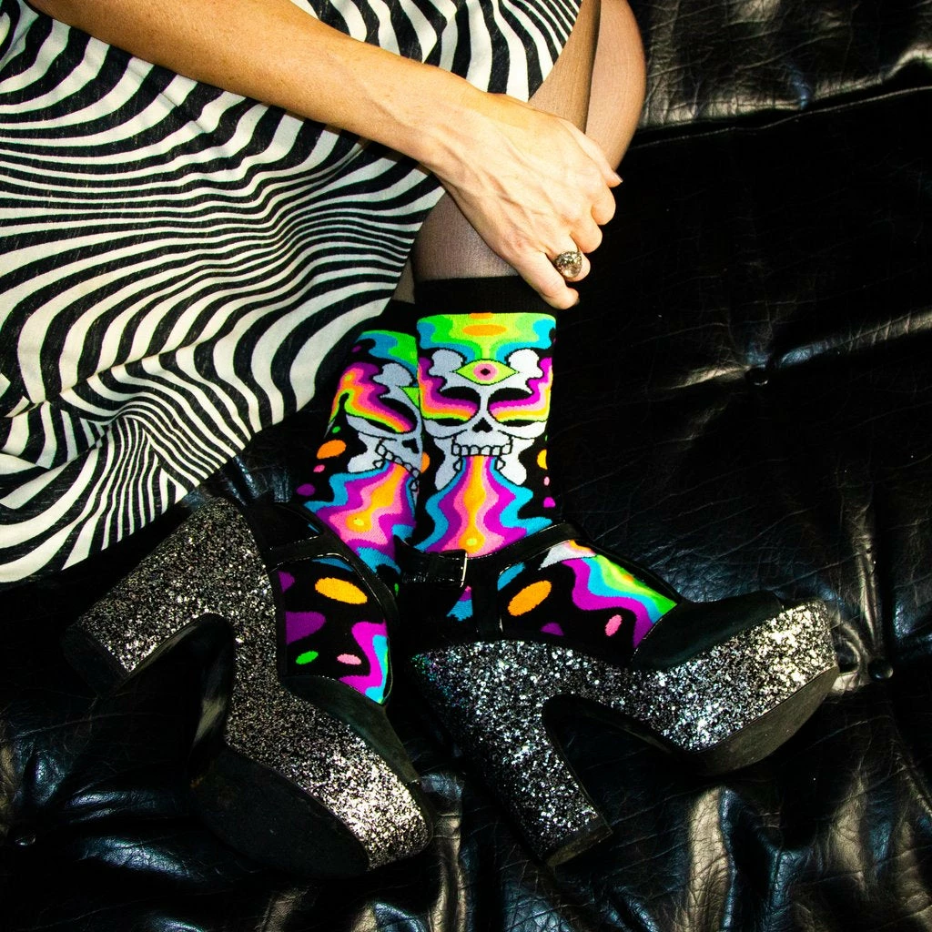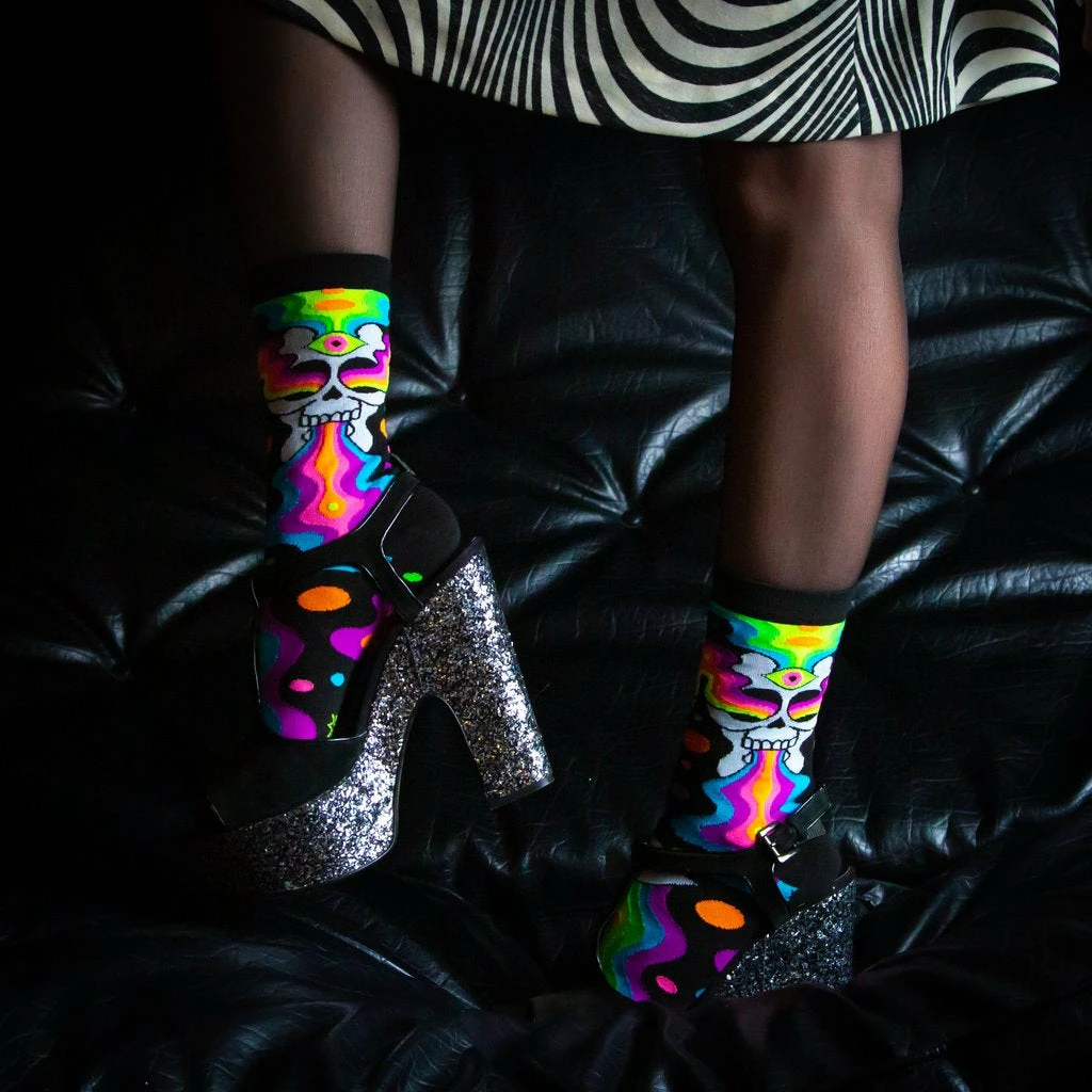 Fit from a women’s size 6 US to approximately a men’s 12.5 US. Knit in a thinner weave, these socks hit around mid-calf and wear comfortably with all shoe types. Machine wash cold, line dry