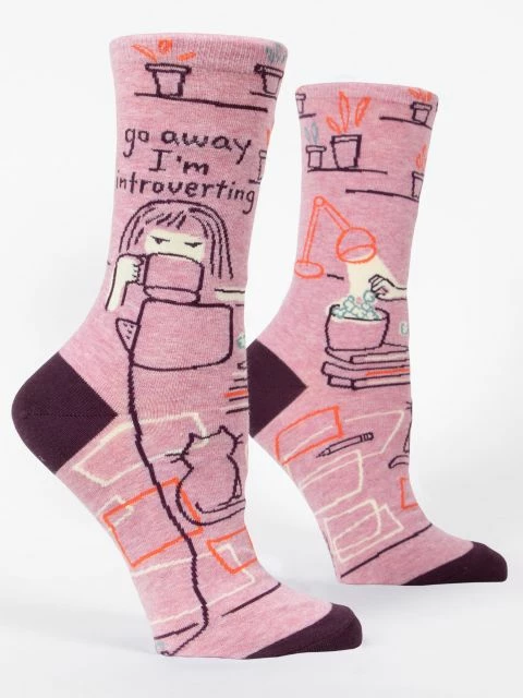“Go away I’m introverting” crew socks