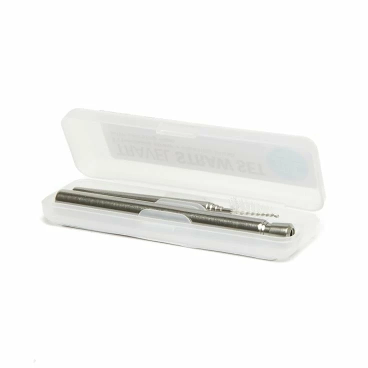 An eco-friendly, reusable alternative to plastic straws. Collapses into portable size. Includes cleaning brush and carrying case.