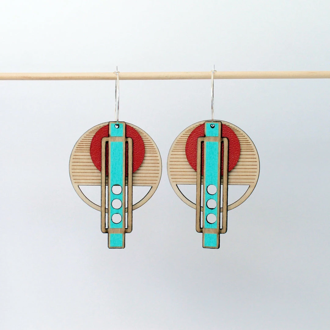MATERIALS: Lightweight leather + birch wood 1″ silver plated hoop (nickel free, lead free) Overall length: Approximately 2.25″